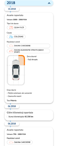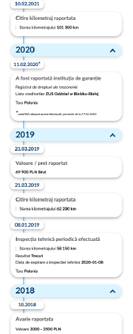 Raportul face posibila verificarea titlurilor vehiculului, inclusiv kilometrajul inregistrat, precum si inregistrarile privind titlul de proprietate. Puteti obtine, de asemenea, acces la informatii privind daunele totale raportate pentru vehicul, rapoartele de dezmembrare a masinii, istoricul accidentelor si cazurile raportate despre furtul vehiculului. Exista inca un plus interesant pentru raport: oferim acces la ofertele de vanzare arhivate ale vehiculului din SUA.